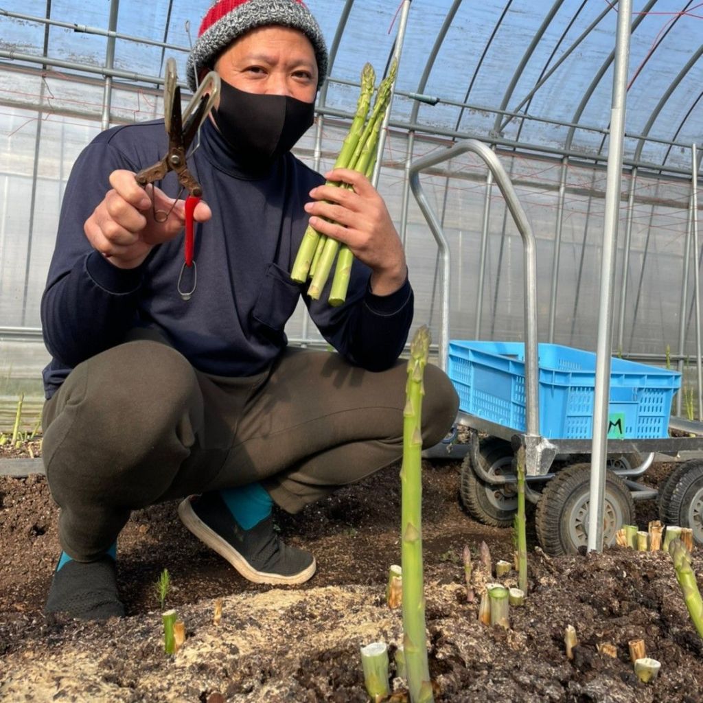 佐賀県の農家ええのうかーさんでは、アスパラの収穫のお手伝いをしました。