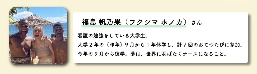 福島さんはその後、計7回のおてつたびを経て、目標にしていた1ヶ月半の海外滞在も果たし、今年の9月から大学に復学したそうです。